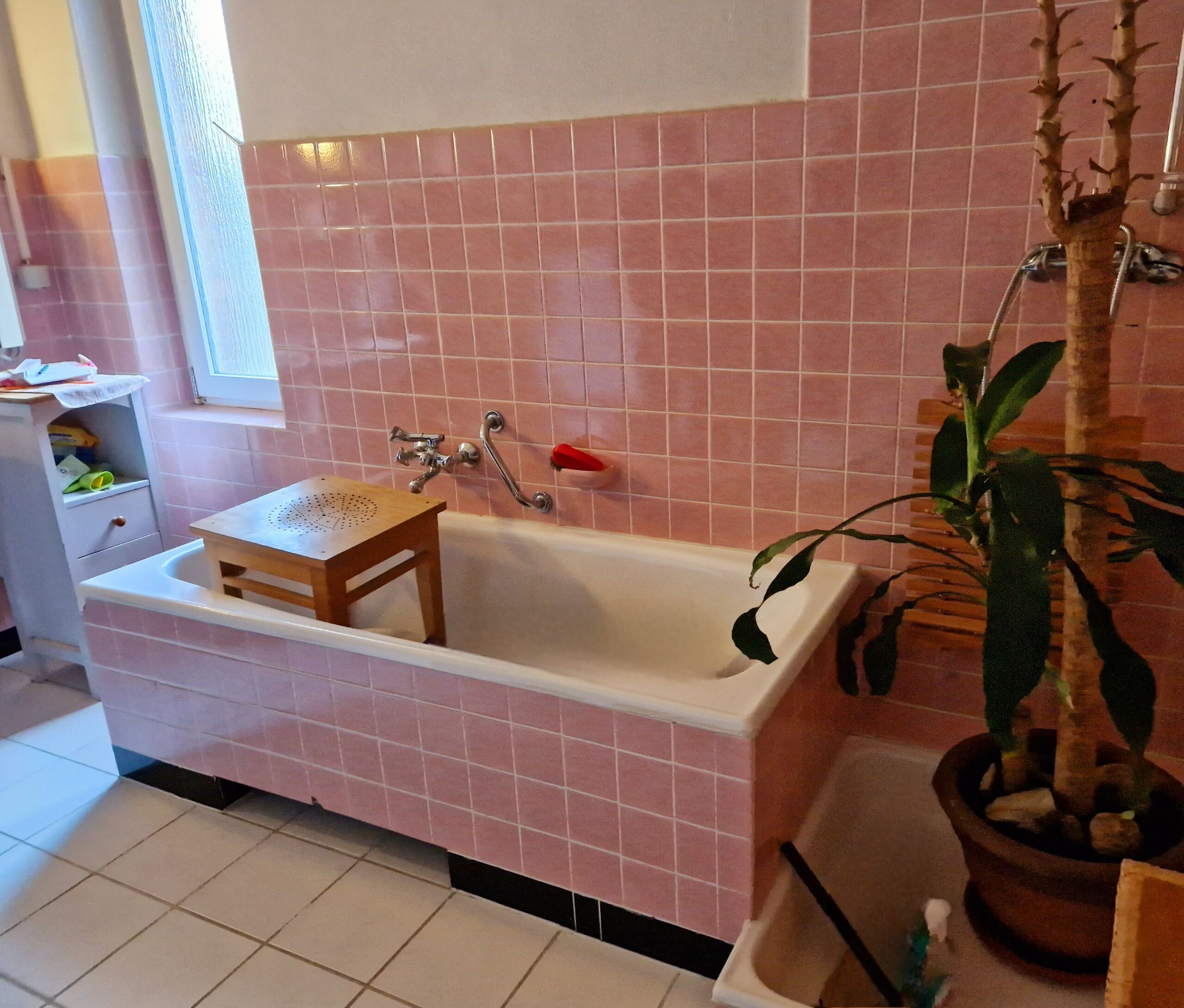 Vorher: Rosa 60er-Jahre-Charme – jetzt: Natürliches Wohlfühlbad! ✨